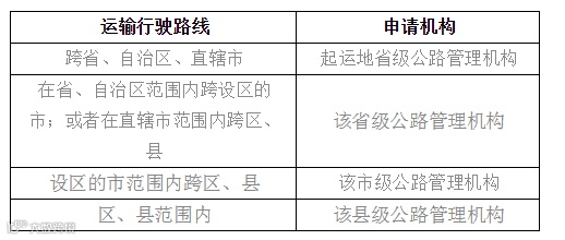 * 跨省、自治区、直辖市进行运输的,向起运地省级公路管理机构递交申请书,申请机关需要列明超限运输途经公路沿线各省级公路管理机构。