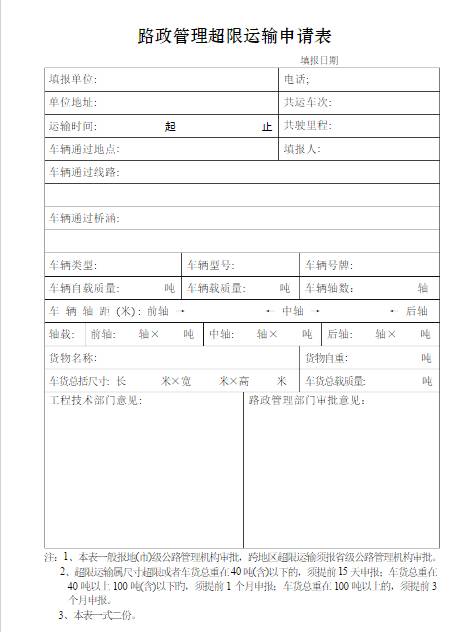 1、《公路超限运输申请表》