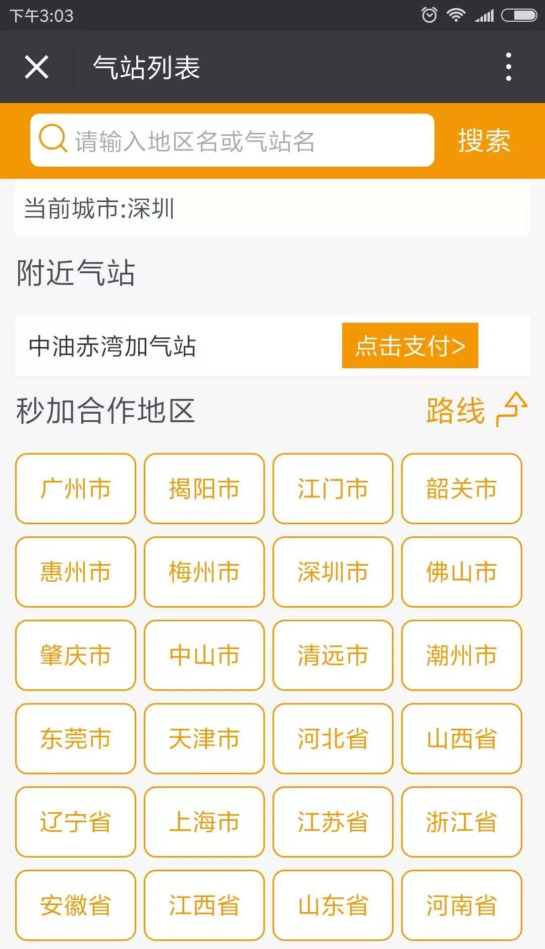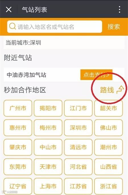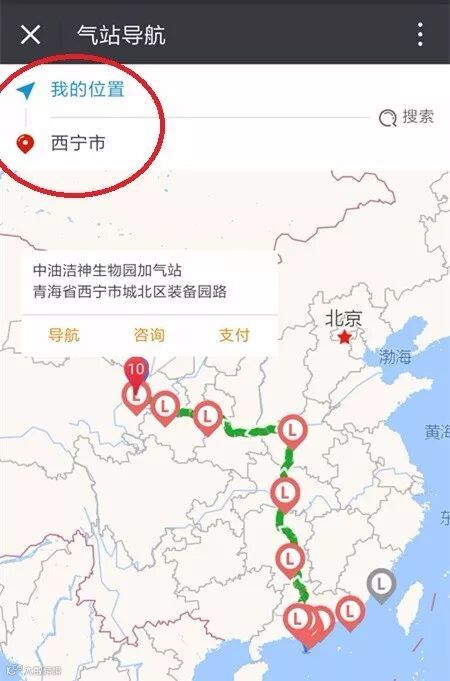 3.也可以点击“路线”,进入气站导航,查找路线途中的气站