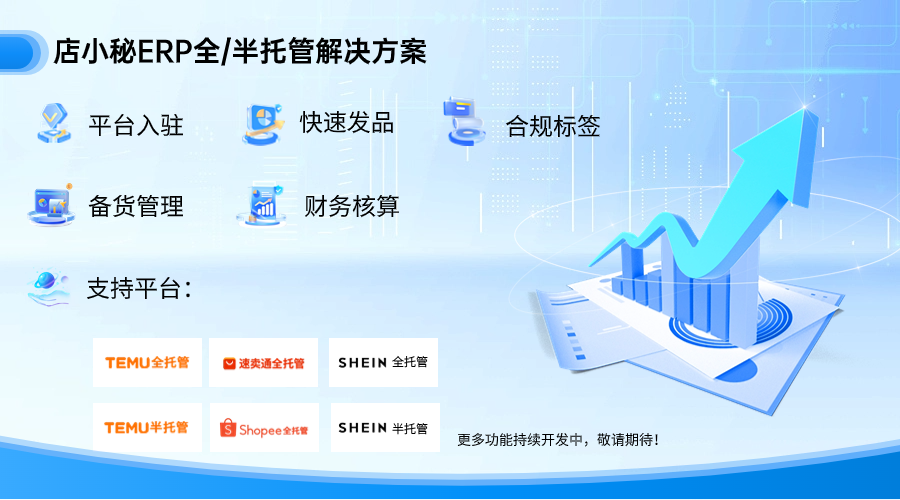作为最懂卖家需求的跨境 ERP,店小秘已深度对接 TEMU、速卖通、SHEIN、Shopee 等多家主流平台,覆盖全托管、半托管全流程,现重磅推出一站式全/半托管解决方案。