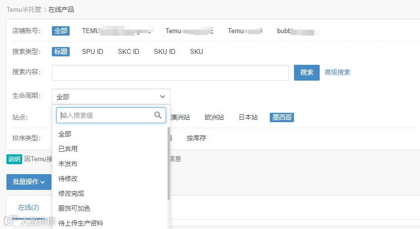 5)多店状态,尽在掌握:店小秘ERP自动同步Temu墨西哥站的店铺后台,并支持实时查看多店铺的产品状态,快捷修改在线产品的库存信息等,精准管理在线产品。