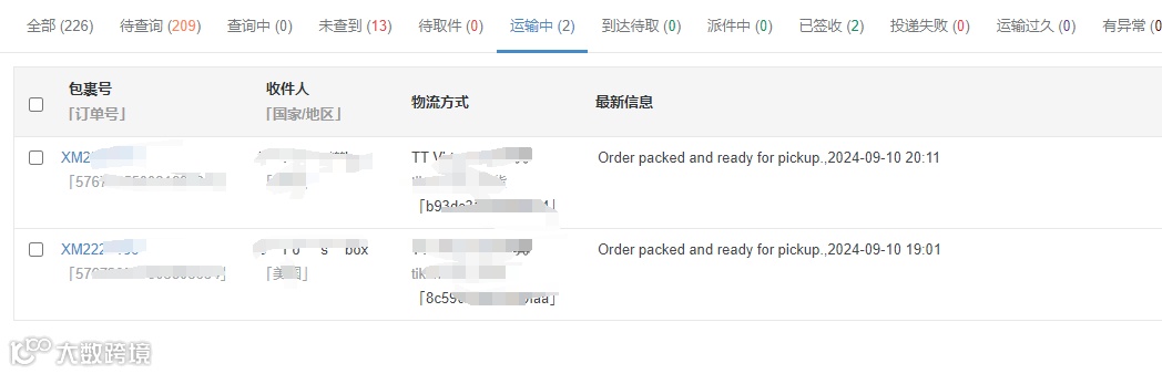 4)物流状态,快速查看:不论是自建仓还是三方海外仓,授权至店小秘ERP后,都可在系统内查看订单的物流轨迹。支持从店铺维度看到所有订单的流转情况,如:代取件、运输中、到达代取等等,也查看单个包裹的最新轨迹信息。