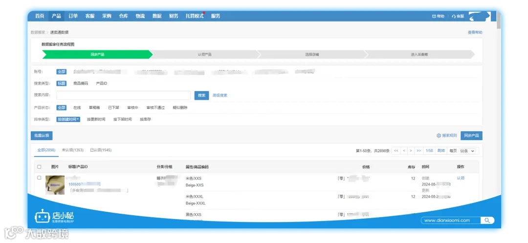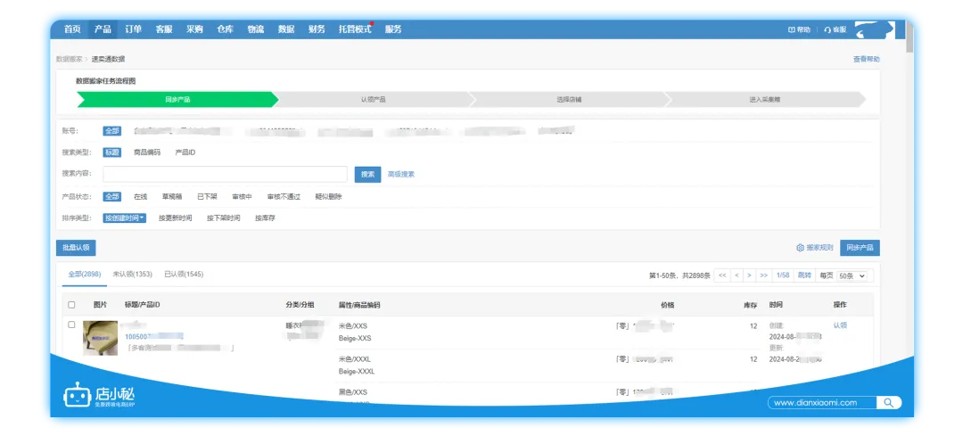 针对多平台、多店铺的跨境卖家,店小秘ERP还支持”数据搬家“,即:在同一店小秘ERP账号下的店铺数据可以互相搬家,实现一键铺货。并且,数据迁移快、搬家成功率高,大幅降低多店管理成本。