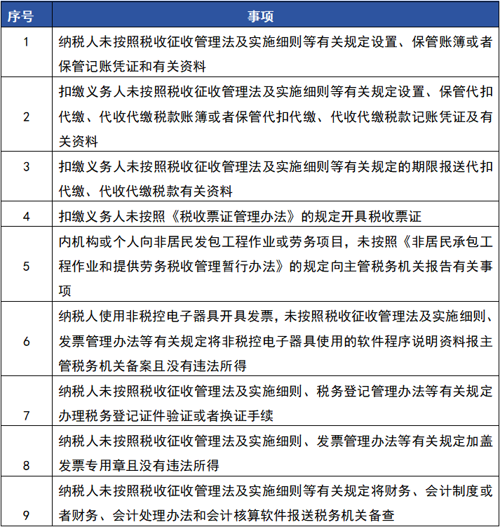 ②纳税人未按照税收征收管理法及实施细则等有关规定将其全部银行账号向税务机关报送。