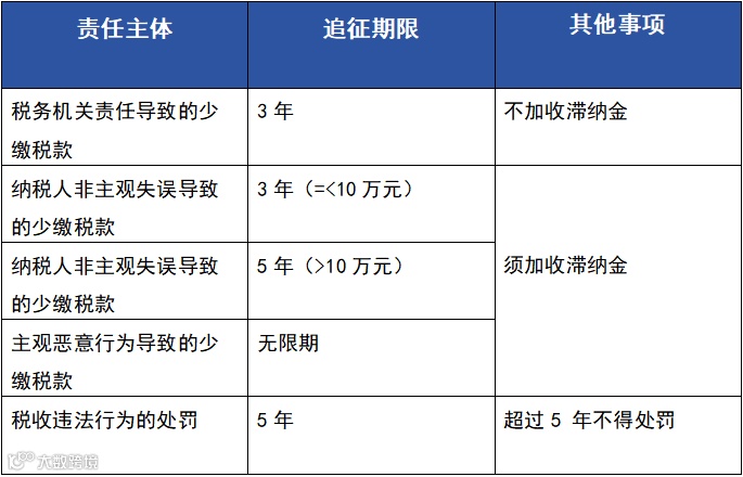 根据《税收征收管理法》规定: 因税务机关的责任,致使纳税人、扣缴义务人未缴或者少缴税款的,税务机关在三年内可以要求纳税人、扣缴义务人补缴税款,但是不得加收滞纳金。