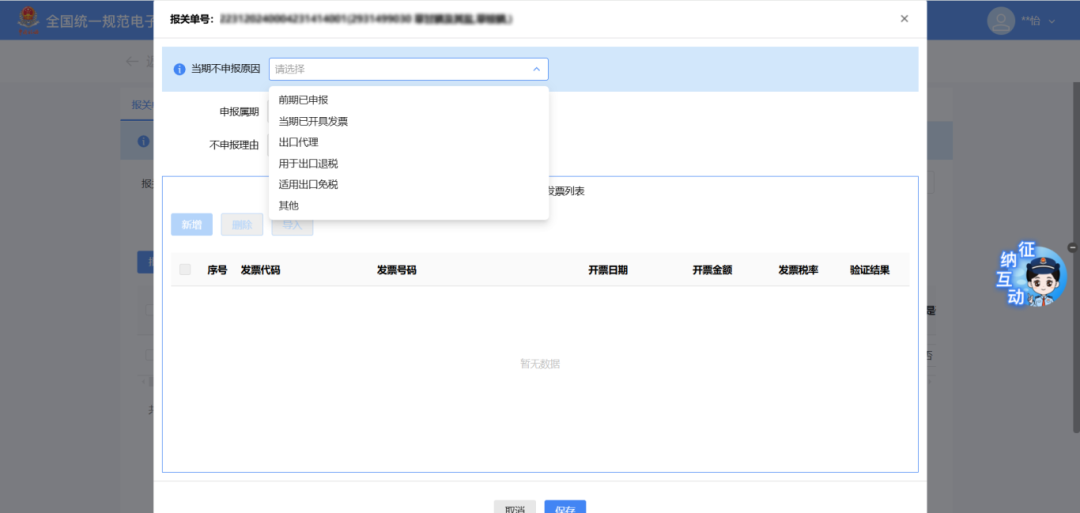 1、自动判断“当期是否申报应征税,不申报理由”。