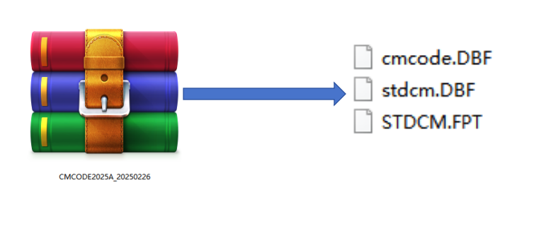 下载命名为CMCODE2025A_20250226的压缩包文件,解压后得到最新版cmcode.DBF码库文件。
