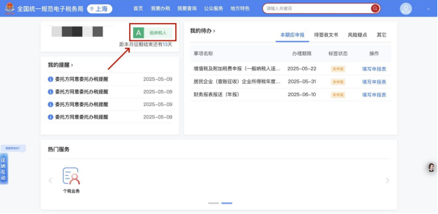 登录电子税务局,在企业名称旁可以看到当前自身纳税信用评价结果。