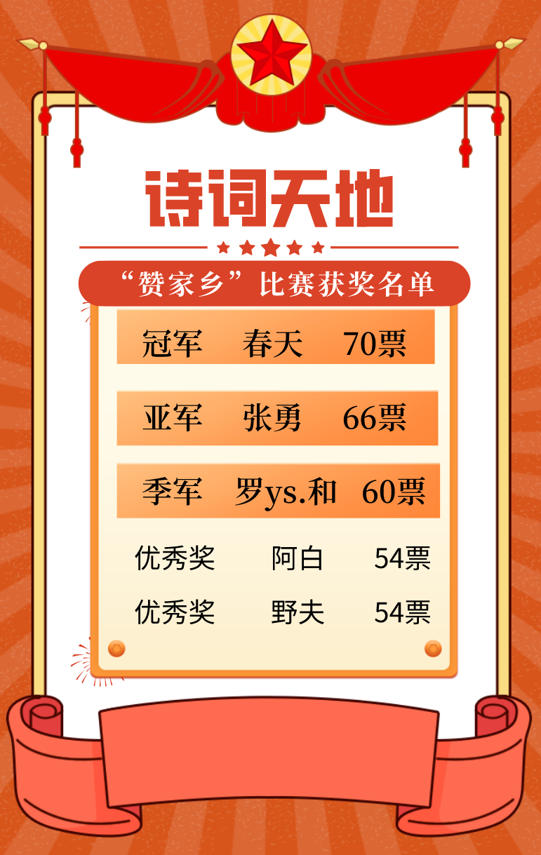 详情点击链接:诗词天地“赞家乡”比赛获奖名单