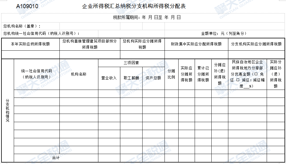 【变化】结合汇总纳税企业申报情况,优化总分机构分摊税款计算方法,并对《跨地区经营汇总纳税企业年度分摊企业所得税明细表》(A109000)及《企业所得税汇总纳税分支机构所得税分配表》(A109010)的表样和填报说明进行调整。按照调整后的规则,企业先对全年应纳税款进行分摊,再由总、分机构分别抵减其已分摊预缴税款,并计算本年应补退税金额。