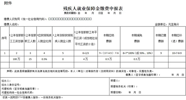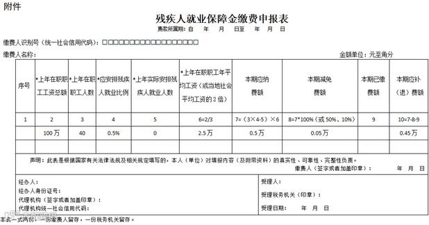 案例二:深圳B公司2023年工资总额100万,职工人数40人,未安排残疾人员,安置比例小于0.5%(实际安置比例为0%),如何申报享受优惠?