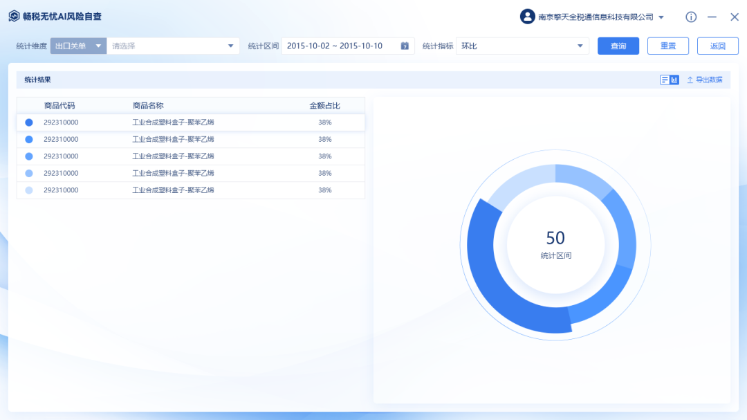 全面排查“关单、商品货源地、运保佣、供应商、跨大类、敏感商品及口岸、异地报关、货物流向异常、各类审核异常”等几十余类风险细节,协助企业查看和追踪原始数据,及时了解退税业务健康状况,确保业务全流程合规化。