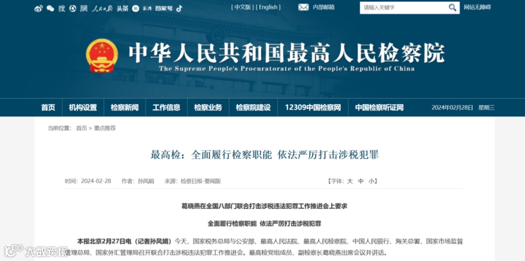 税务合规无小事,税务不合规的企业,势必会被重罚。根据最高人民检察院2月28日官方新闻披露,2024年八部门联合打击机制将聚焦六个重点领域,重点打击利用骗取出口退税,以虚开手段骗取留抵退税、财政返还和政府补贴,利用空壳公司暴力虚开、异地虚开、变票虚开等严重涉税犯罪。