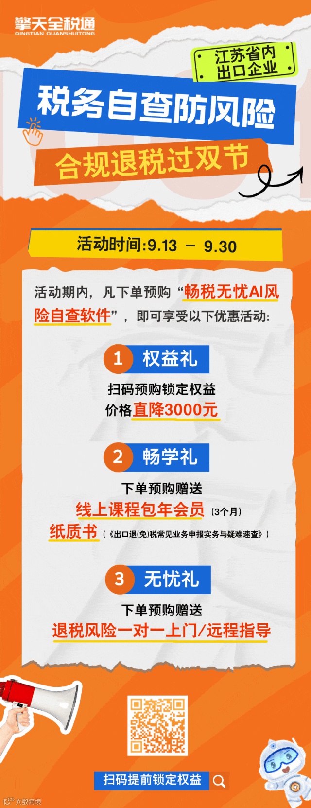 风险无小事,管控需趁早!现在扫码预约即可享受享受三重好礼,为退税之路上道“保险”。