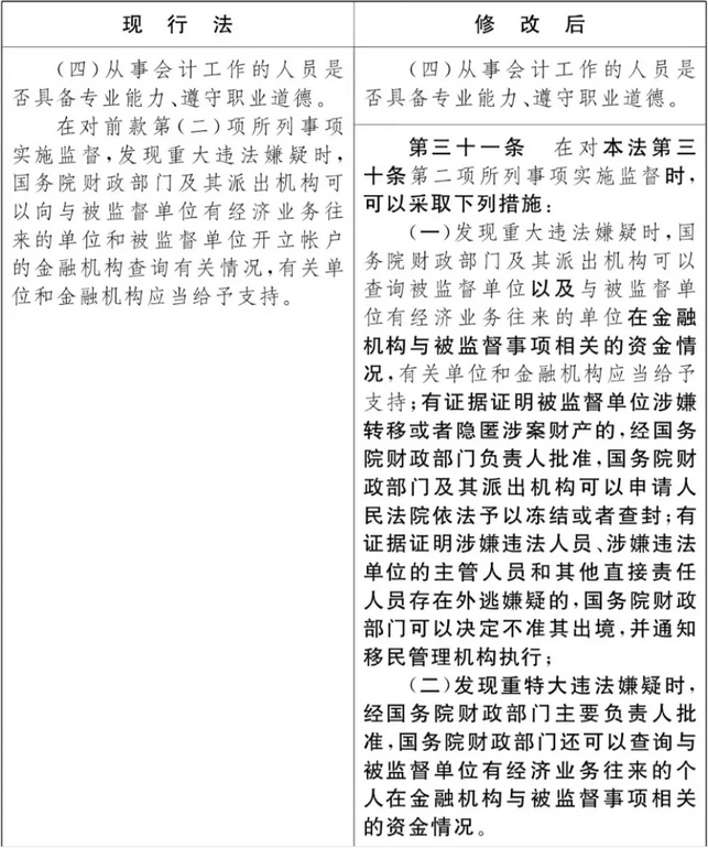 3. 明确并加大个人的法律责任:新法清晰界定了直接负责的主管人员和其他直接责任人员的法律责任。对于授意、指使编制虚假财务会计报告等行径,将面临高额罚款,在情节严重时,罚款额度更高。另外,若属于公职人员,还应当依法给予处分;构成犯罪的,依法追究刑事责任。