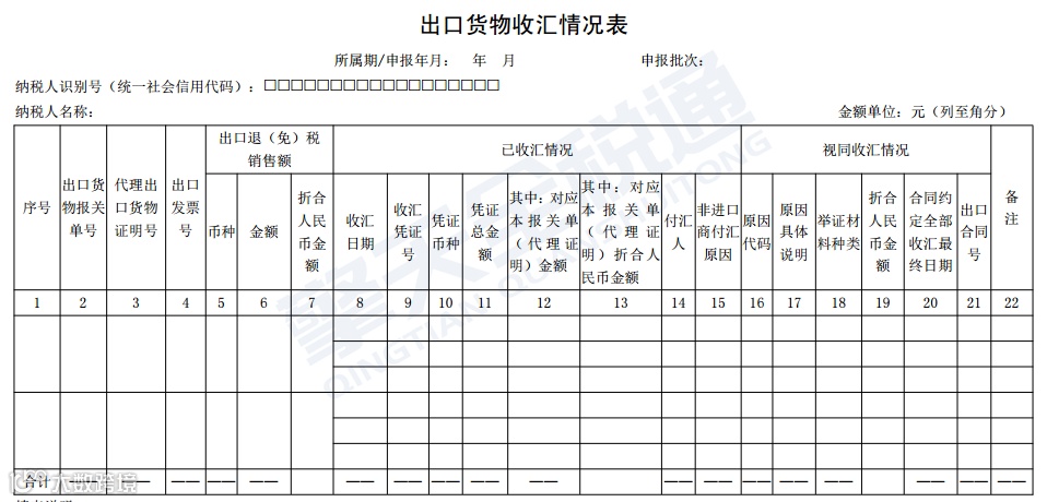 (一)《出口货物收汇情况表》