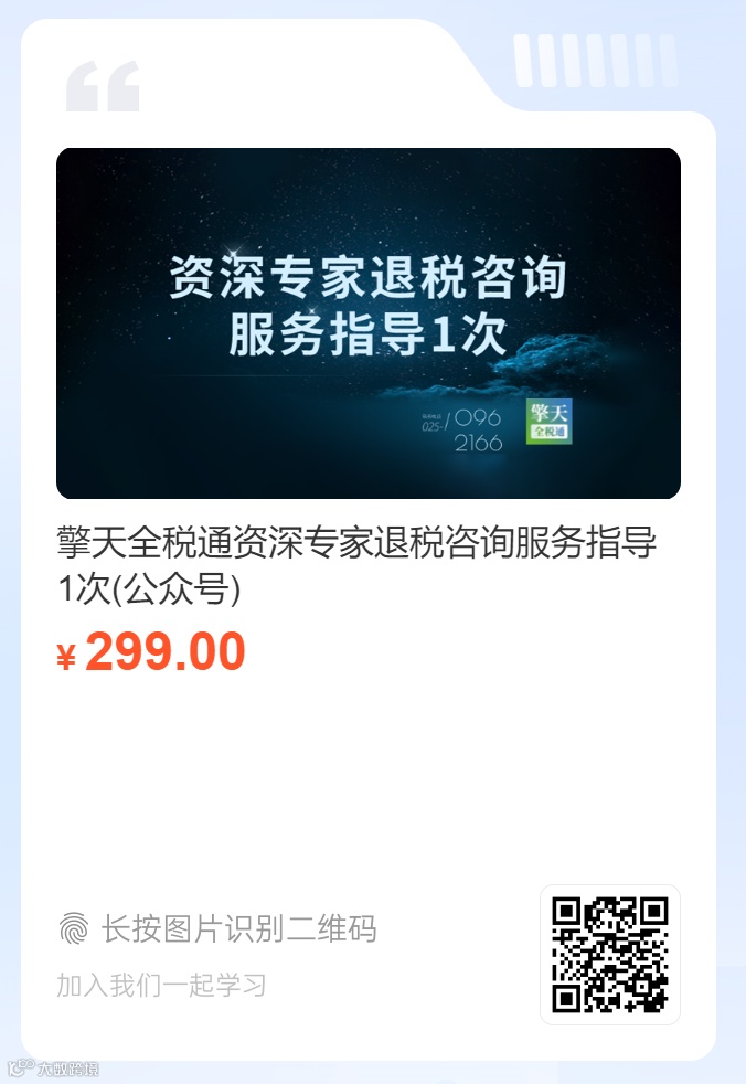擎天全税通深耕出口退税二十余年,汇聚了300余位财税领域专业人才和上百位业务资深专家,如果您在出口退税过程中遇到疑问,可扫描下方二维码获取资深退税专家退税指导。