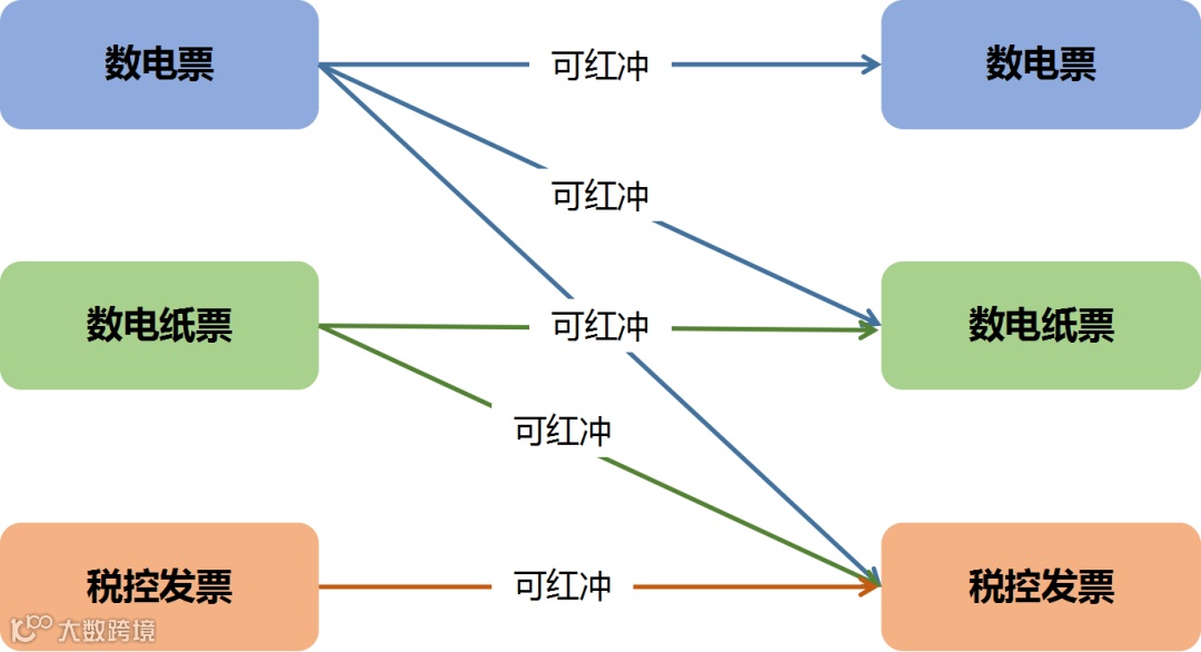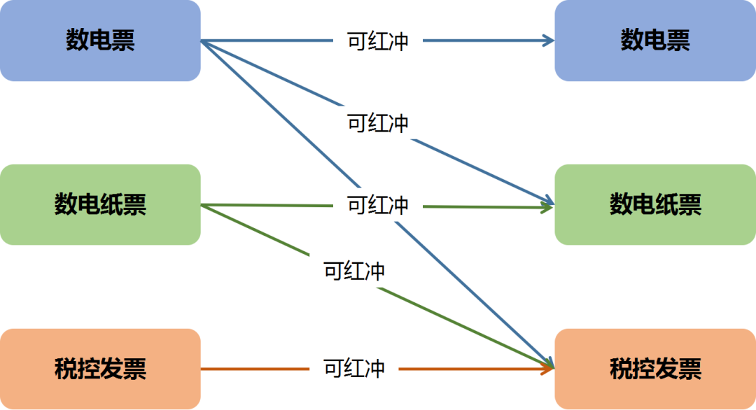 各票种之间的红冲规则为“新冲旧、电冲纸”,具体如下: