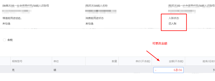 如果购买方尚未做入账处理,销售方发起部分红冲,金额无法改动。