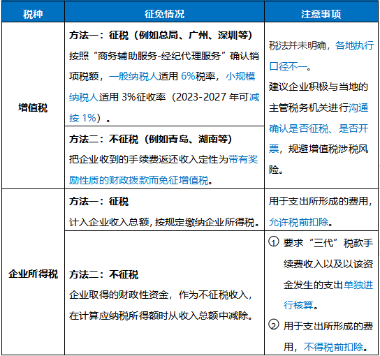 对企业而言,“三代”税款的手续费问题主要关注3点: