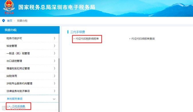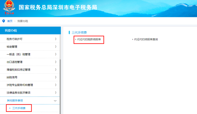 【我要办税】→【其他服务事项】→【三代手续费】→【代征代扣税款结报单】。