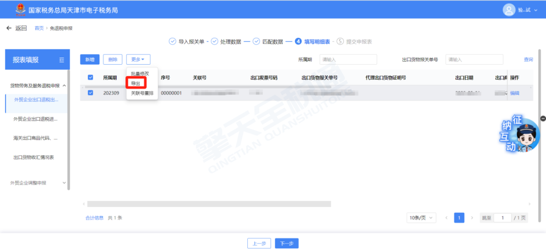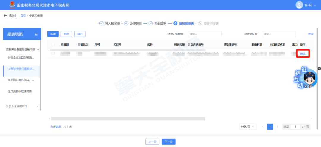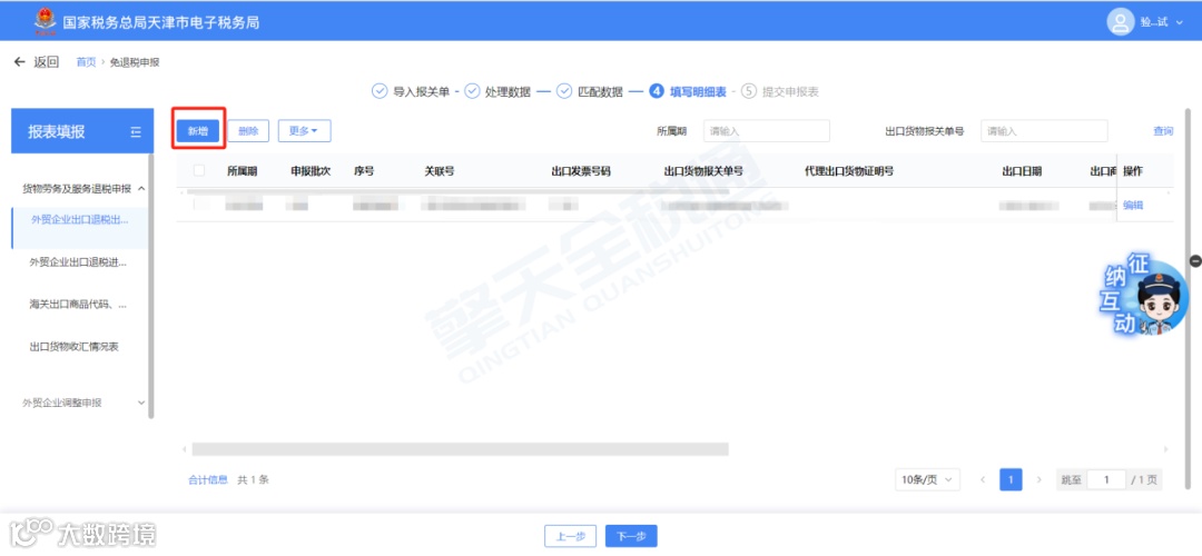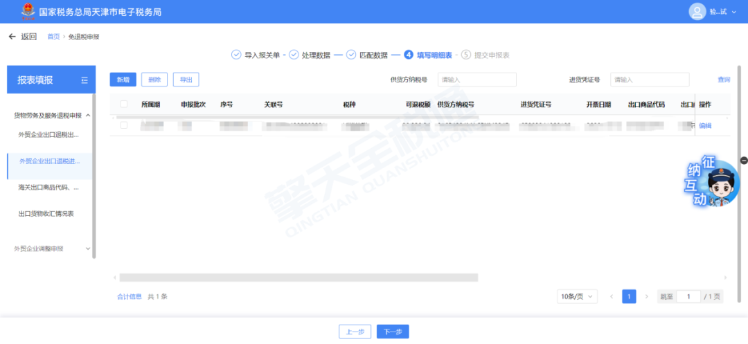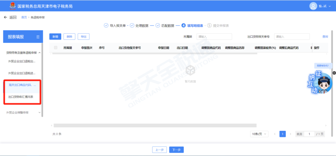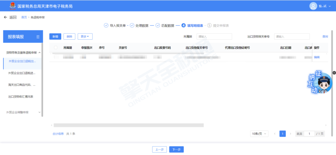 3.点击页面下方的【上一步】可返回至“处理数据”界面,点击【下一步】按钮,可跳转至“填写明细表”界面。
