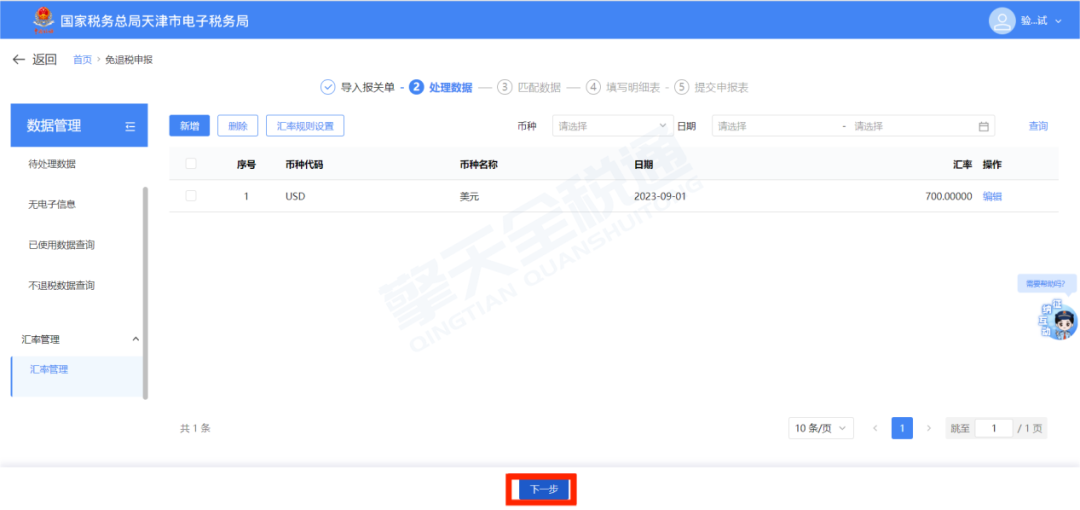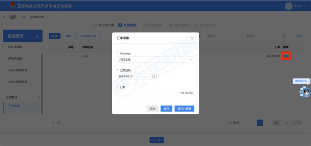 (5)选择汇率管理—汇率管理,可对下载的报关单中的币种对应月份的汇率进行管理;