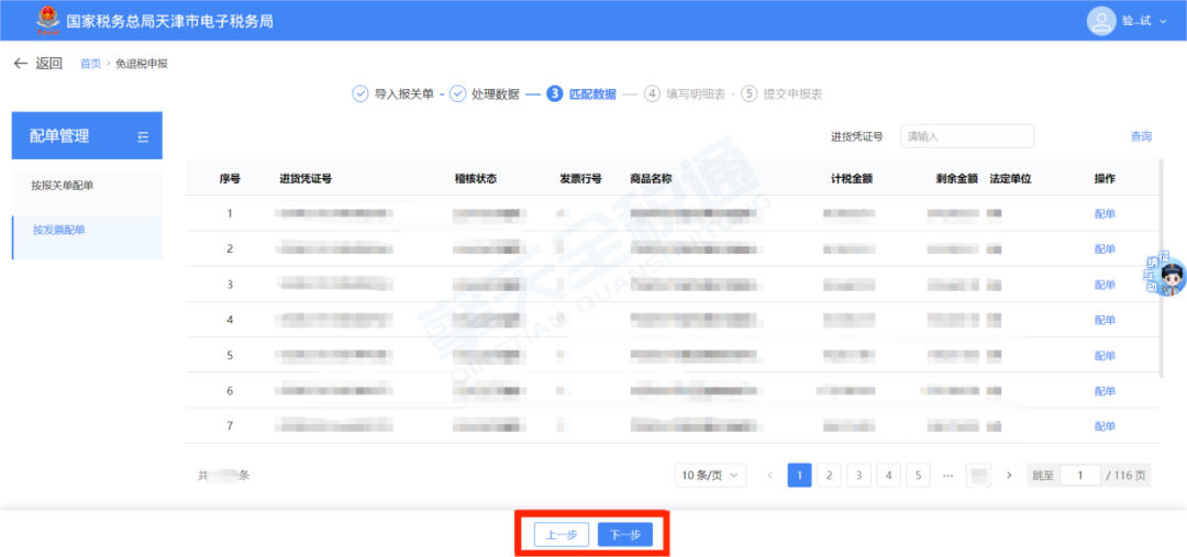 2.点击页面下方的【上一步】可返回至“匹配数据”界面,点击【下一步】按钮,可跳转至“提交申报表”界面。