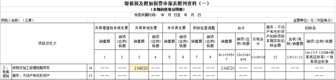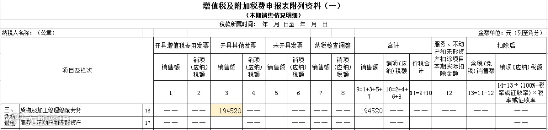 上图为生产企业增值税填写方法,外贸企业填写18行对应栏次。