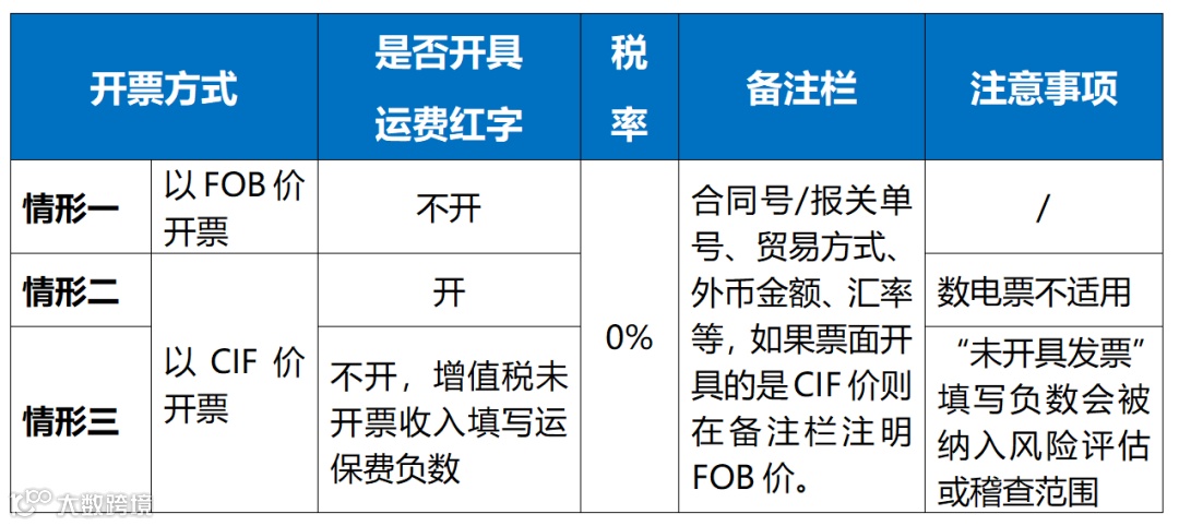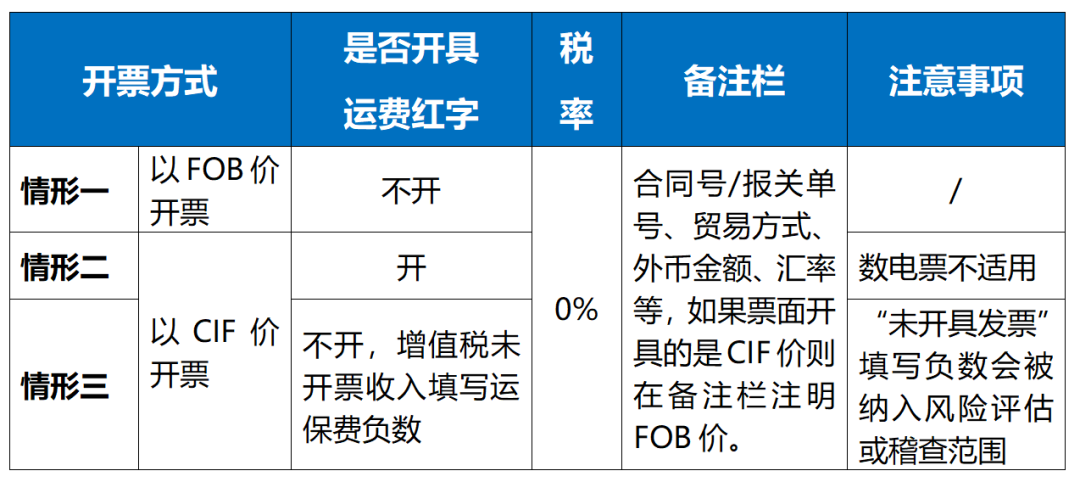 直接按报关单CIF价开具0%普票,备注栏要求同上。