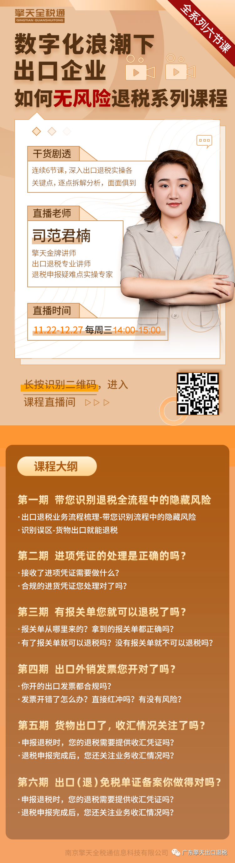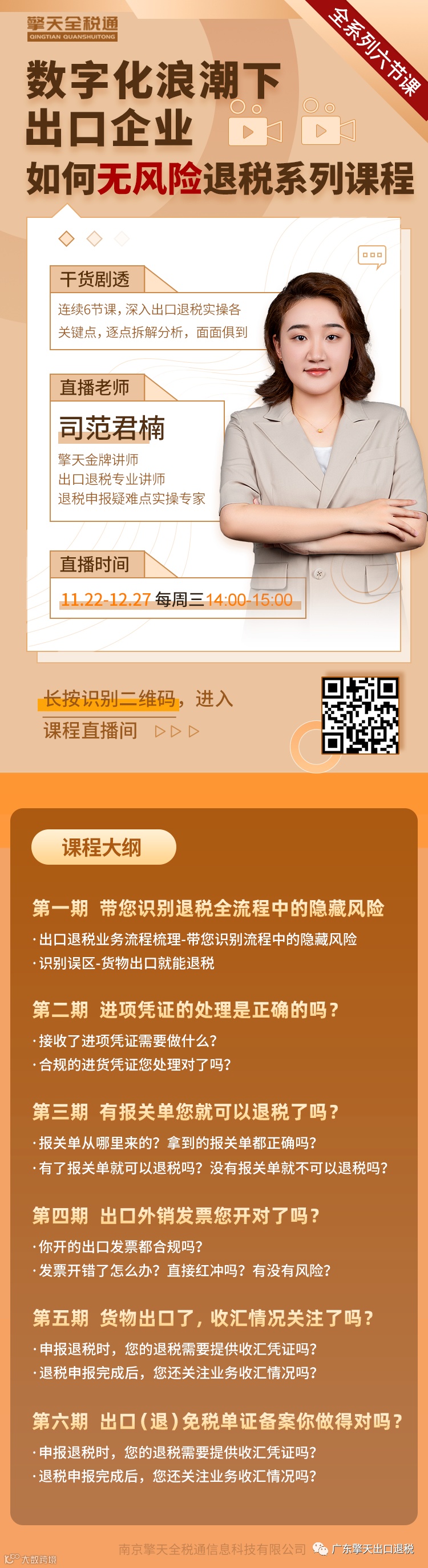 微信推送规则变更,点击顶部蓝字“青岛擎天出口退税”进入公众号主页,点击右上角“…”,将“青岛擎天出口退税”设为星标⭐️。
