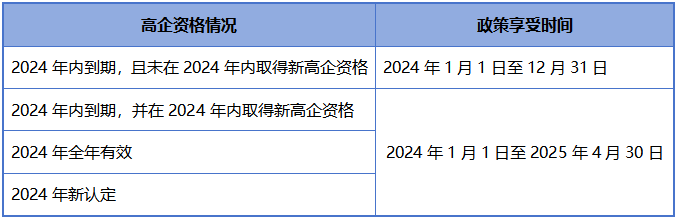 对于已在《2023年度享受增值税加计抵减政策先进制造业企业名单》中,且当前高新技术企业资格仍有效的企业,于2024年6月30日起暂停享受政策。拟继续申请进入2024年度名单的,可于2024年7月起的每月1日至10日提交申请,截止时间为2025年4月10日。