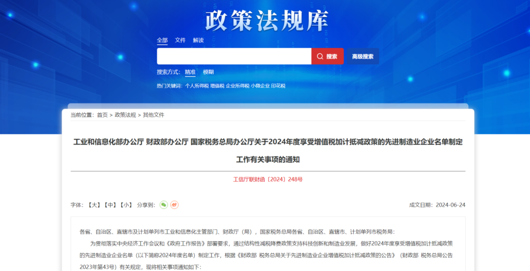 近日,工业和信息化部办公厅、财政部办公厅、国家税务总局办公厅发布《关于2024年度享受增值税加计抵减政策的先进制造业企业名单制定工作有关事项的通知》,增值税加计抵减政策非新政、却有新规。2024年享受政策时,有哪些新变化呢?