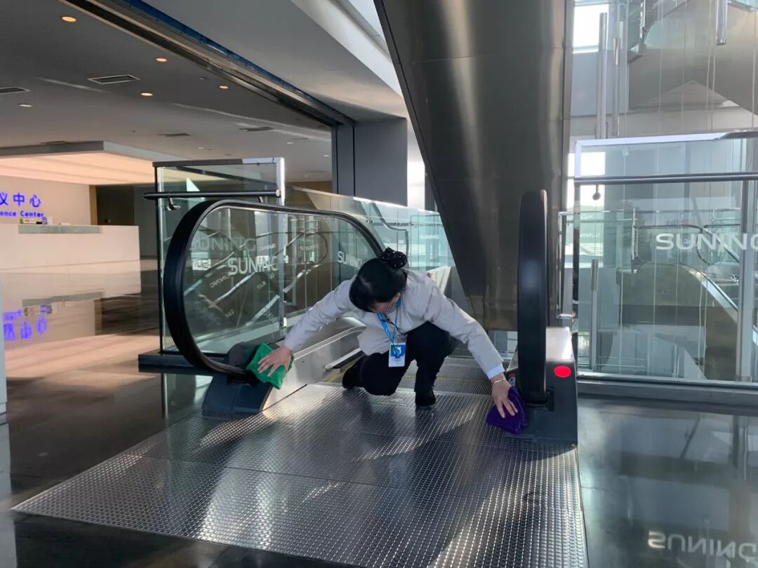 “擦电梯的时候要注意缝隙,用铲刀把里面的脏东西铲出来。”