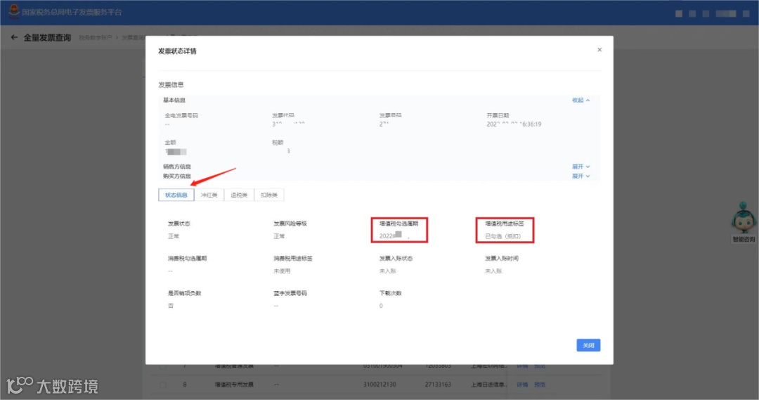 比如,公司2023年2月勾选了6份全电专票,如图: