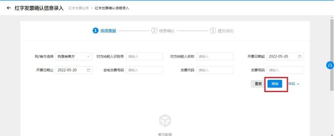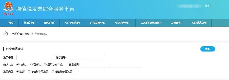 (1)在菜单中依次选择【发票管理】—【红字申请确认】,进入如下界面。
