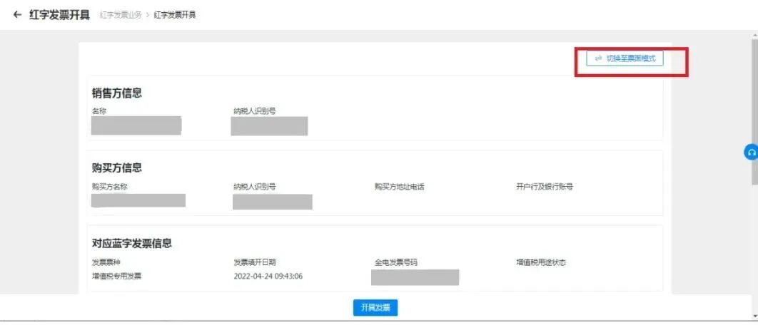五、信息填写完毕后,确认无误,选择【发票开具】即可。