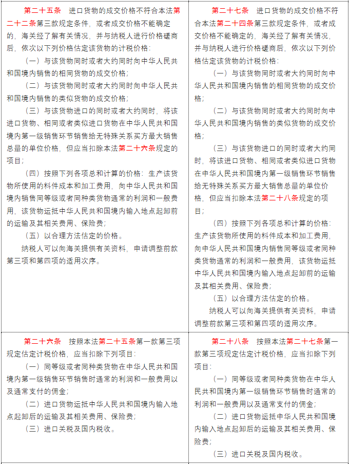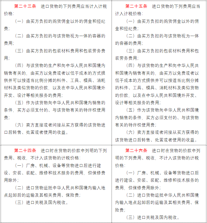 3、《关税法》引进了更多的财务与审计理念,将完税价格改成“计税价格”,以保证税收政策的准确、公平和透明。完税价格的划分依据是商品或劳务在销售国的价格,包括间接税在内;而计税价格的划分依据是商品或劳务的实际价格,不包括间接税。(第二十四条)