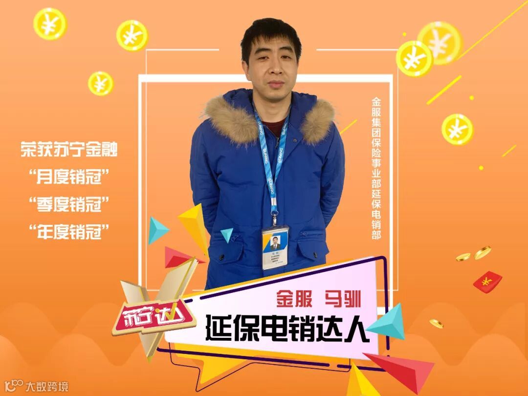 金服集团保险事业部延保电销部的服务专员。每天8小时的工作时长,可以外呼90通电话,成功预约10单;年度服务客户1931人,2019年单月销售量突破10万;荣获苏宁金融“月度销冠”“季度销冠”“年度销冠”等荣誉称号。