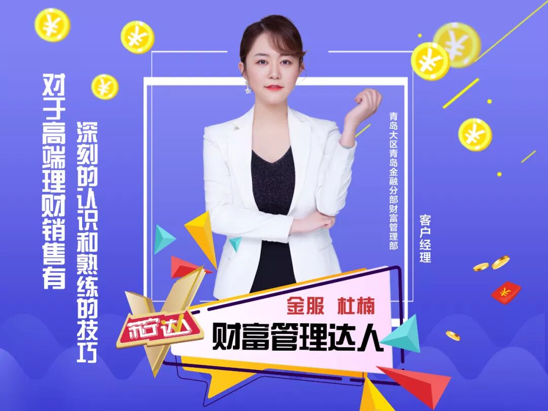 青岛大区财富管理部的主任。熟练掌握苏宁金融在售银行理财,公墓基金,私募基金,券商资管产品,保险理财等产品的特点及优势;专业的服务使其目前服务客户2634人,管理资产5.2亿,2019年单月升级存交易量突破1000万,应收账款单月突破600万,毛利完成率在全国名列前茅。