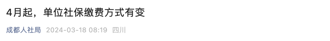 成都人社局官方微信公众号发布了《4月起,单位社保缴费方式有变》的文章,明确从2024年4月起,成都社保将正式告别参保单位社保费的批量扣费时代。参保单位每月可通过“社保费管理客户端”或四川省电子税务局等渠道自行申报缴费。
