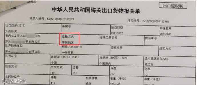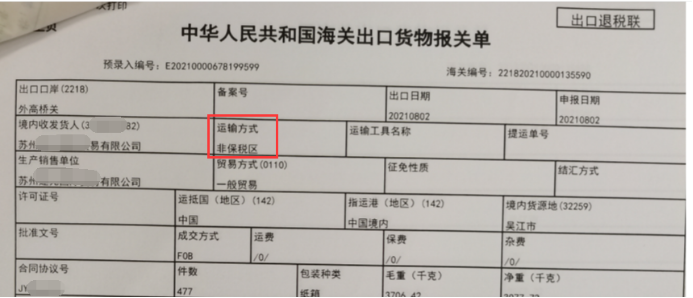 2、提问: 出口报关单上的运输方式为“非保税区”,可以申报退税吗?