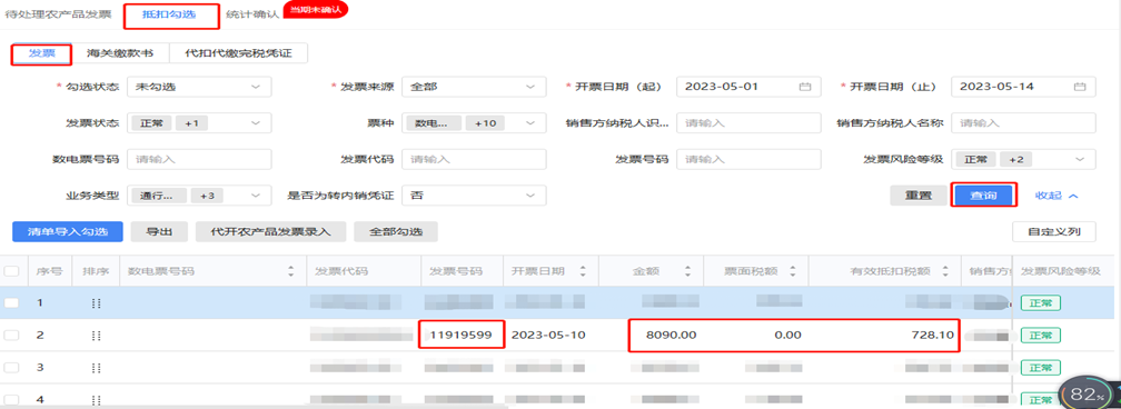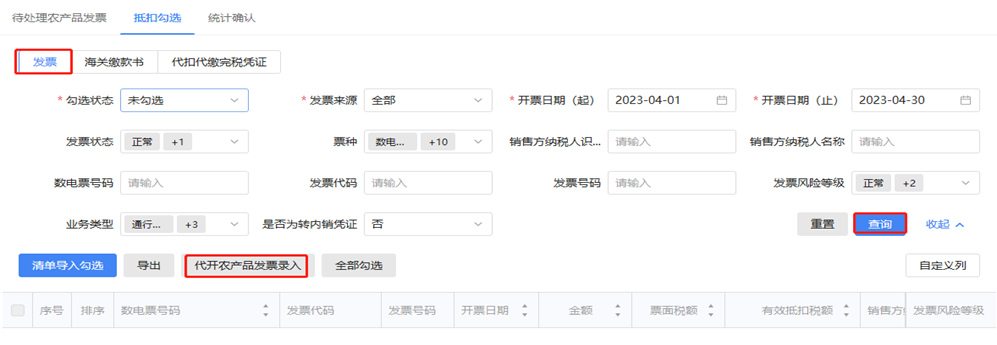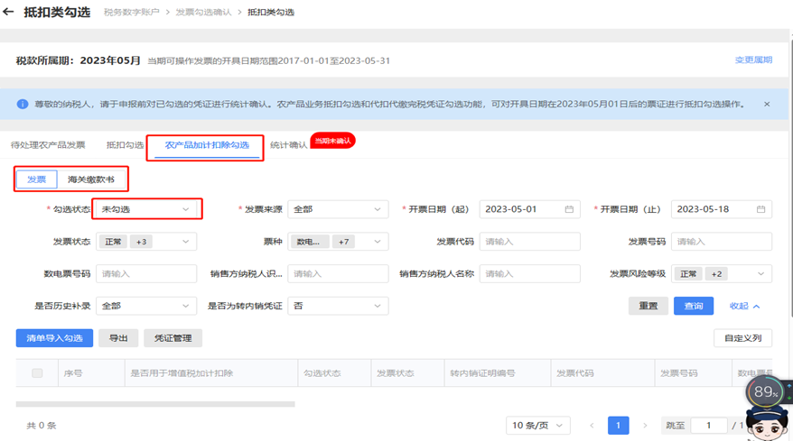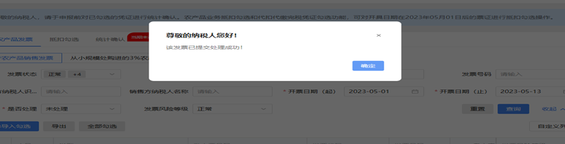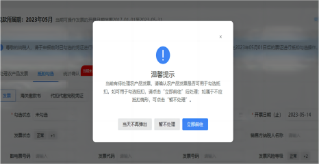 第一步如有需要待处理的销售发票或小规模处取得的专用发票进入“抵扣勾选”后系统会自动提示,按照“待处理农产品发票”预处理操作即可;