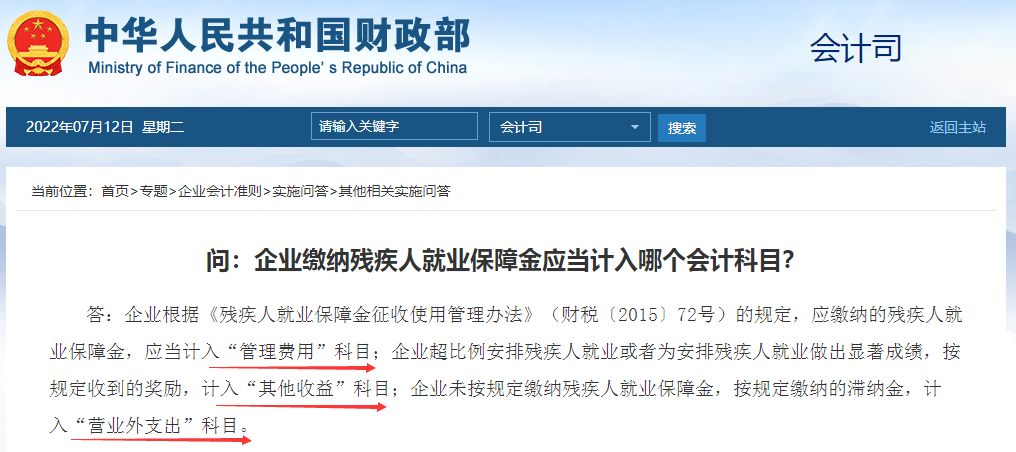 财政部发布了企业会计准则实施问答,明确了残保金的会计处理: