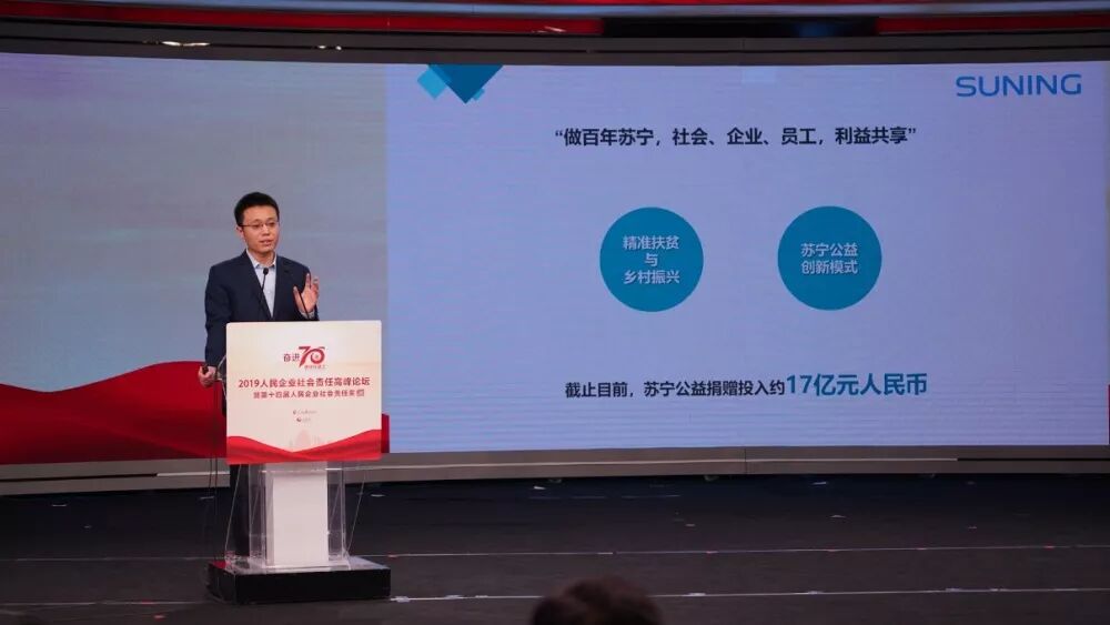 12月27日,2019人民企业社会责任高峰论坛暨第十四届人民企业社会责任奖颁奖典礼在人民网举行,各大企业代表分享经验。苏宁荣获第14届人民企业社会责任奖“年度扶贫奖”奖项,表彰苏宁在扶贫领域深入、专业的投入,这也是苏宁第七次获得人民企业社会责任奖。
