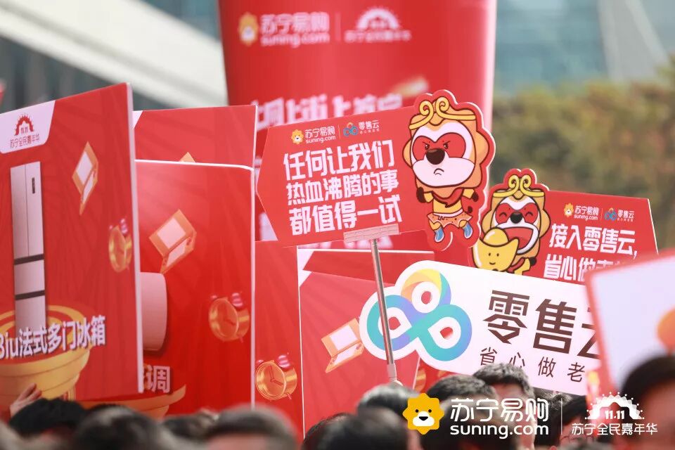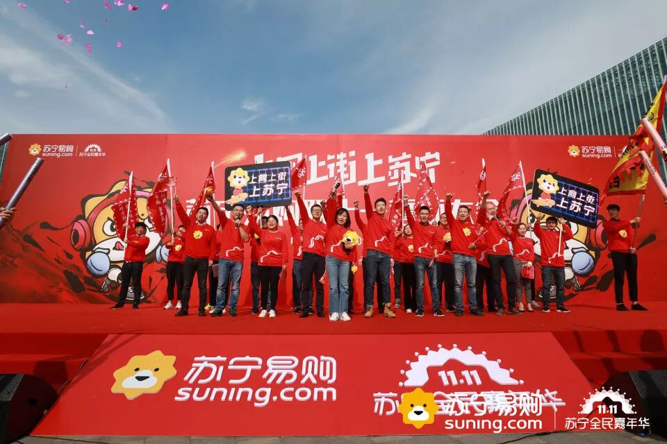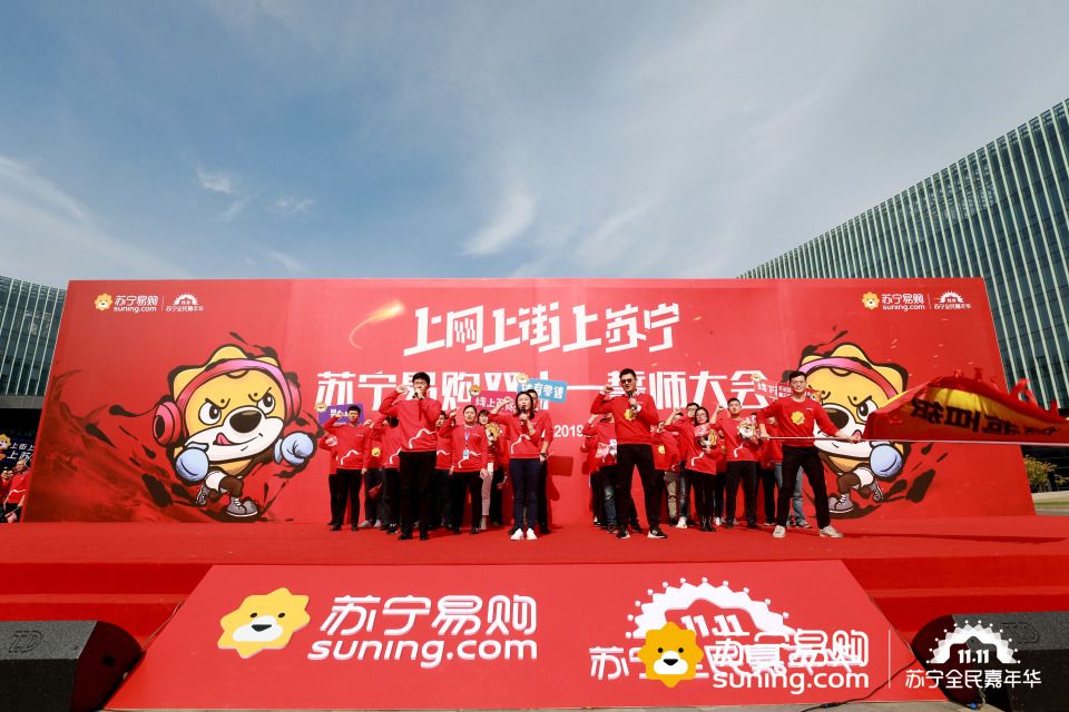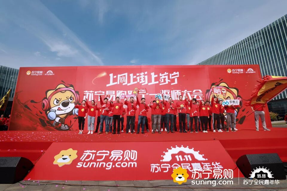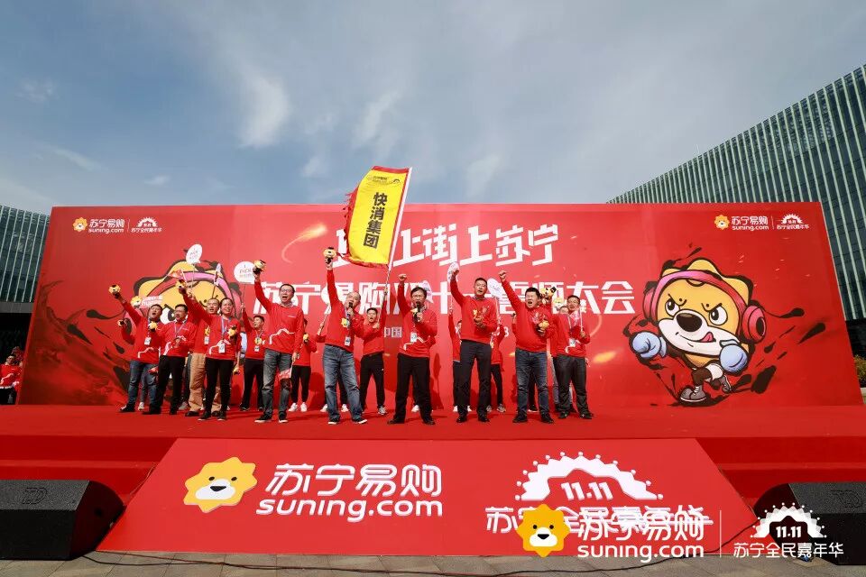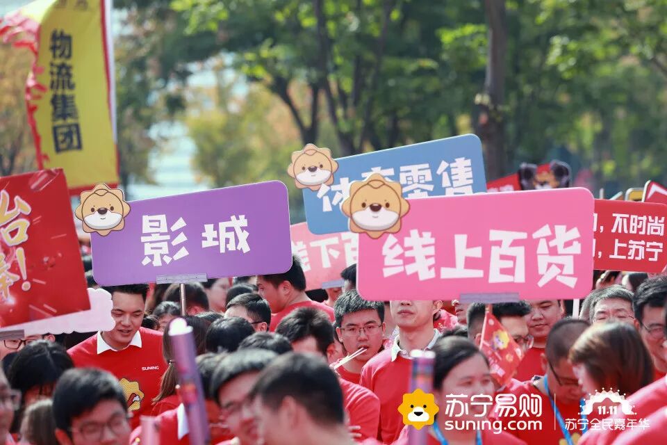 战略布局已成型,紧接而来的就是要调兵遣将、各路大军纷纷出击。10月28日,在双十一发布会召开一周后,集团就在南京总部举行“双十一全民嘉年华”誓师大会:活动现场,战鼓擂起,声声震天,“场景零售”军团全体出击,来自零售、置业、金融、物流、科技、体育、文创等集团旗下各产业体系的战狮们齐聚一堂,气氛既紧张又活泼,人人热血沸腾、激情澎湃,展露出“双十一必胜”的决心。