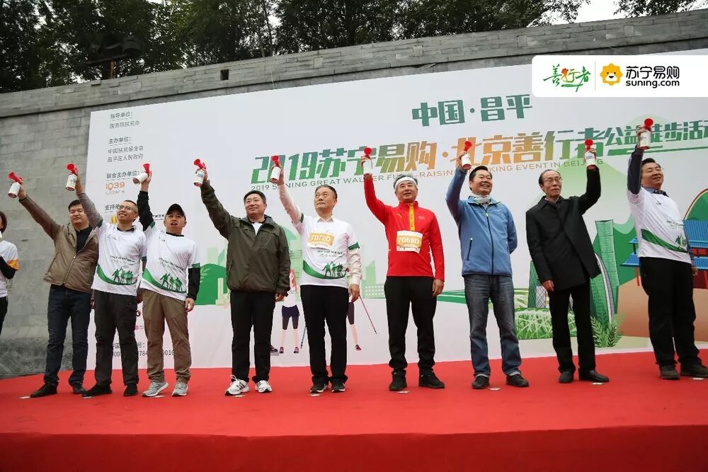 国务院扶贫办副主任洪天云、中国扶贫基金会理事长郑文凯先生、北京苏宁易购副总经理高崑、善行者2019年度公益大使陈乔恩等嘉宾也现身善行者活动现场,为参加徒步的善行者们加油打气。