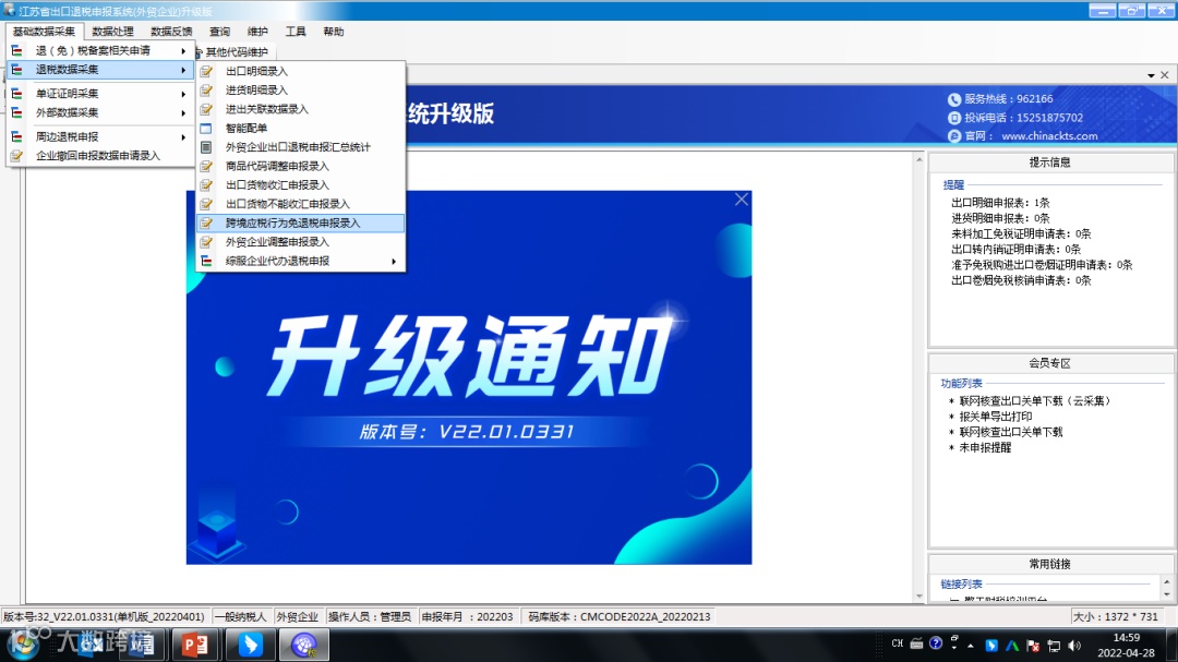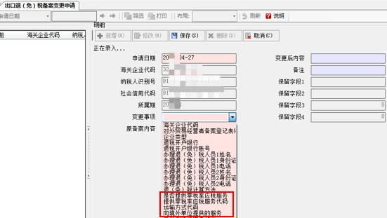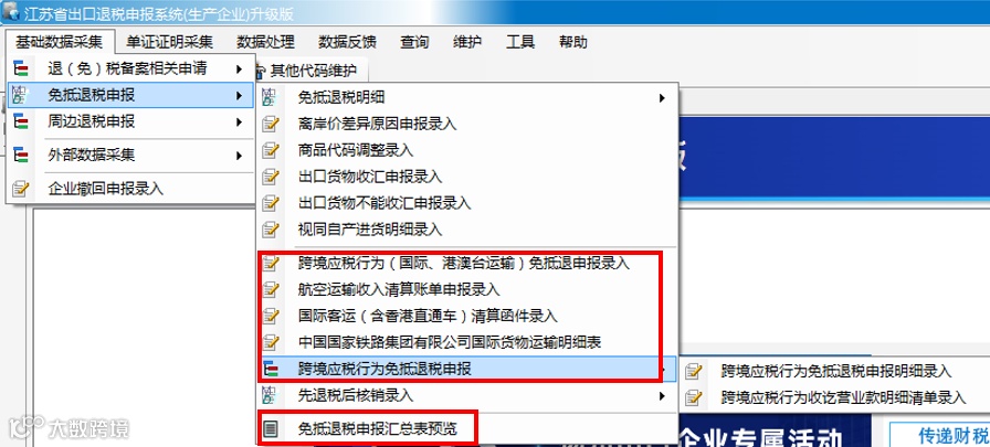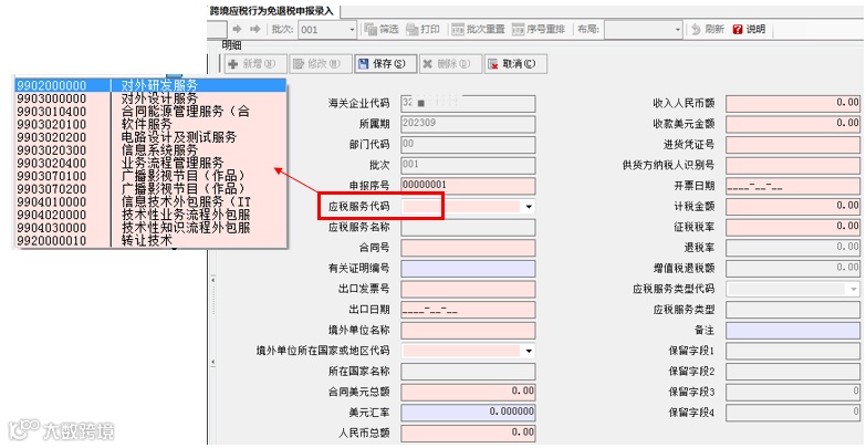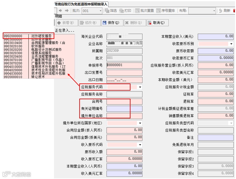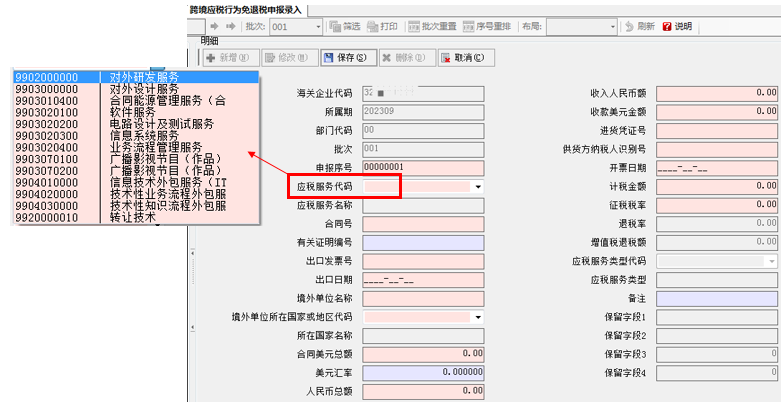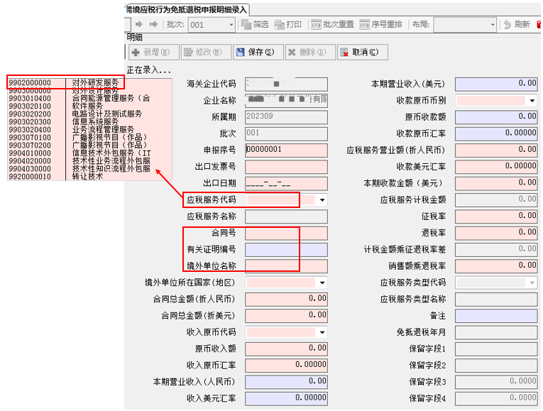 第一步:在申报软件中,填写《跨境应税行为免退税申报录入》: