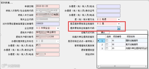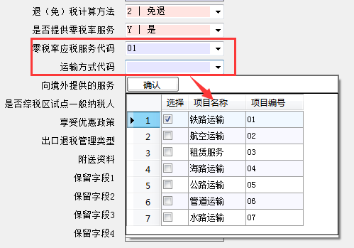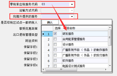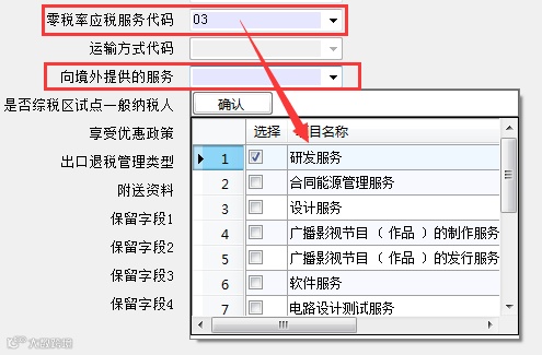 【零税率应税服务代码】在提供零税率应税服务代码表中选择对应业务代码,可多选。
