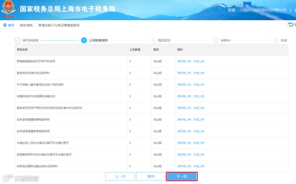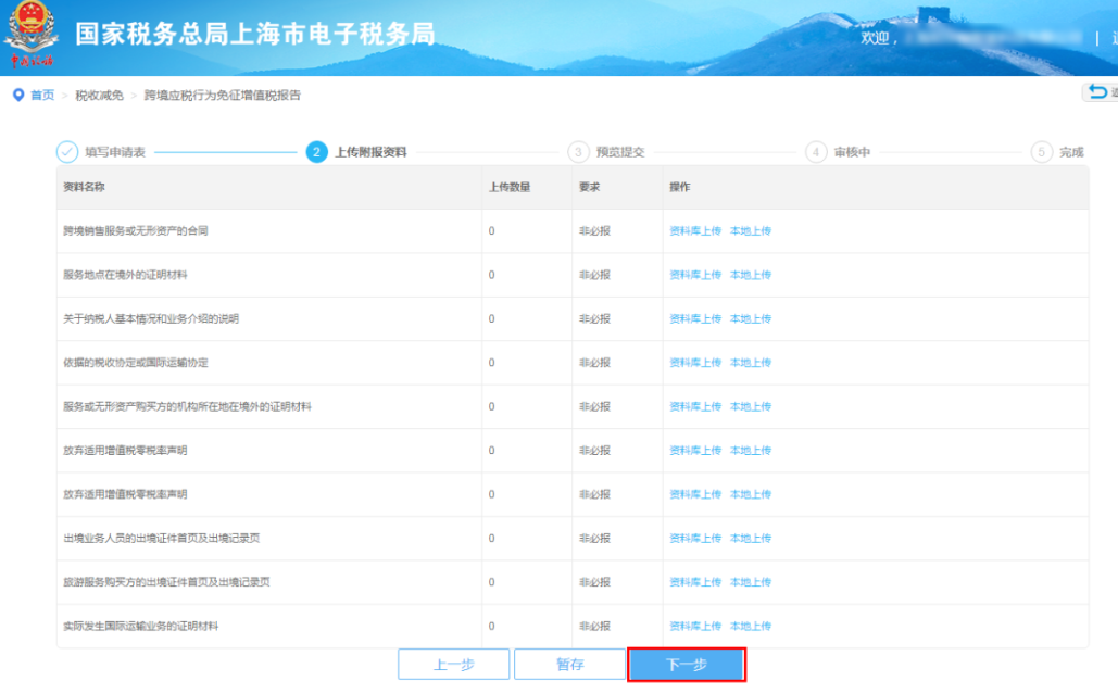 【注】必报类资料为必须上传,非必报类根据申请的具体应税行为进行上传。